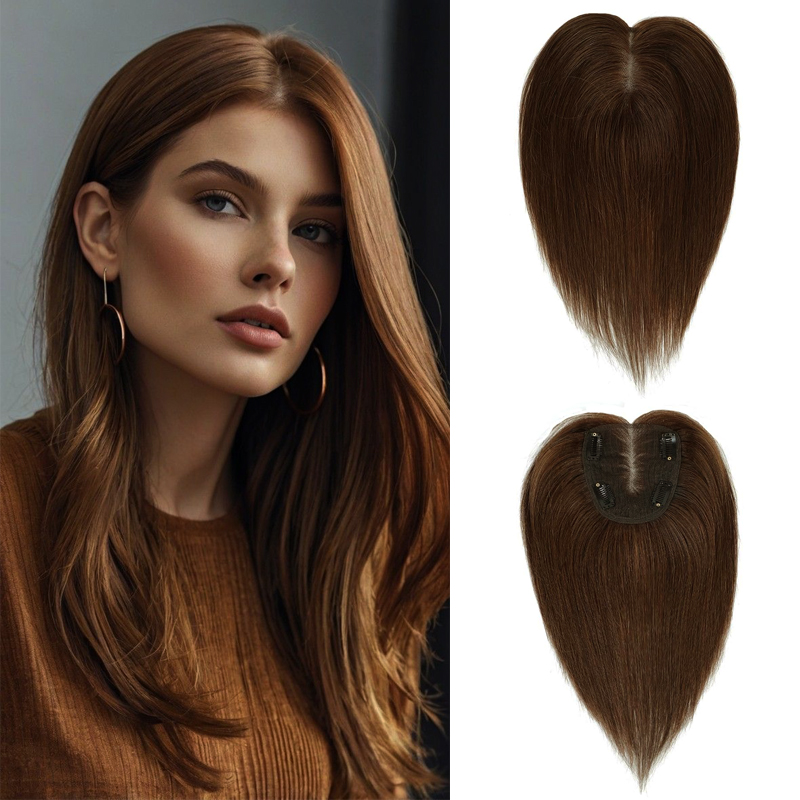 【HOT SALE】Dark Brown | Straight soft hair topper | Silk breathable base | 10-24 inch | Heat Friendly | Easy to Wear | As Natural as Your Own Hair