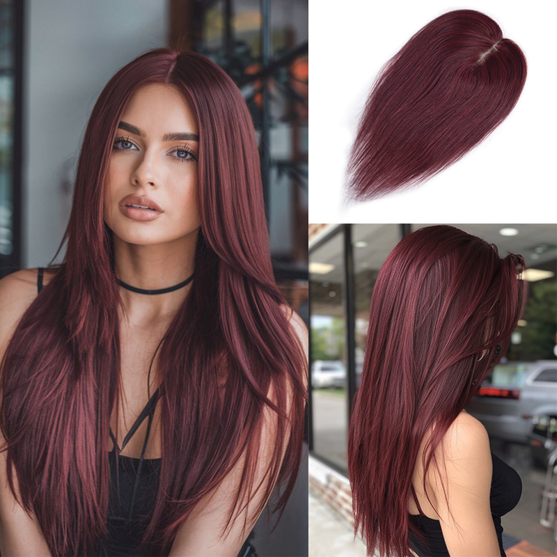 【HOT SALE】Burgundy Rose | Straight soft hair topper | 23 colors | 10-24 inch | Heat Friendly | Easy to Wear | As Natural as Your Own Hair