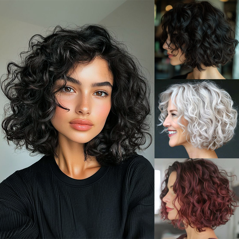【HOT SALE】Short shaggy curly bob | Curly hair topper | Natural and soft hair | 08-16 inch | 11 colors | Breathable Silk Base | Natural seamlike human scalp