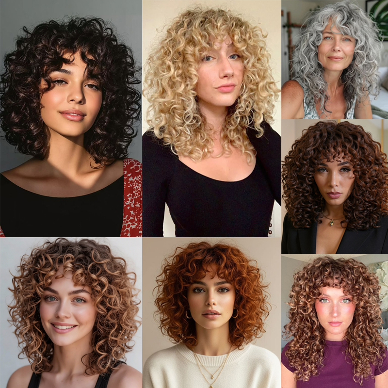 【HOT SALE】Curly Hair Toppers With curly bangs| | Easy to wear | 11 colors | Breathable Silk Base | Natural seamlike human scalp